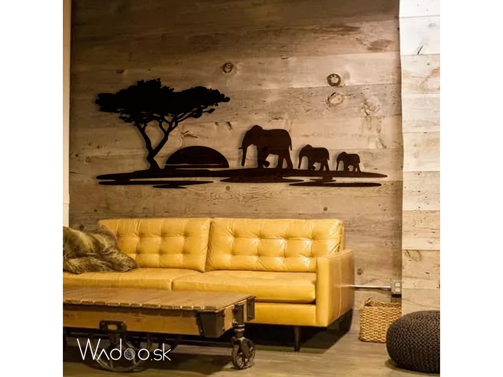 Elegantný drevený obraz na stenu s motívom Slonov.